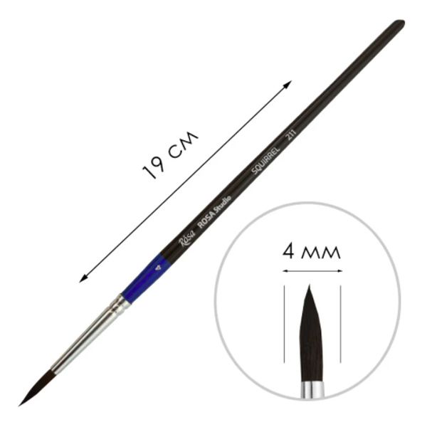 Кисть круглая белка, №4, короткая ручка 211, Rosa Studio (Роса)