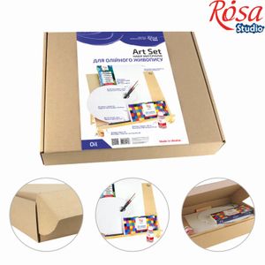 Набор масляных красок 12 цв, 20мл+3 кисти +подрамн. 30х40мм + мольберт + палитра + картон. коробка, Роса(Rosa Studio)