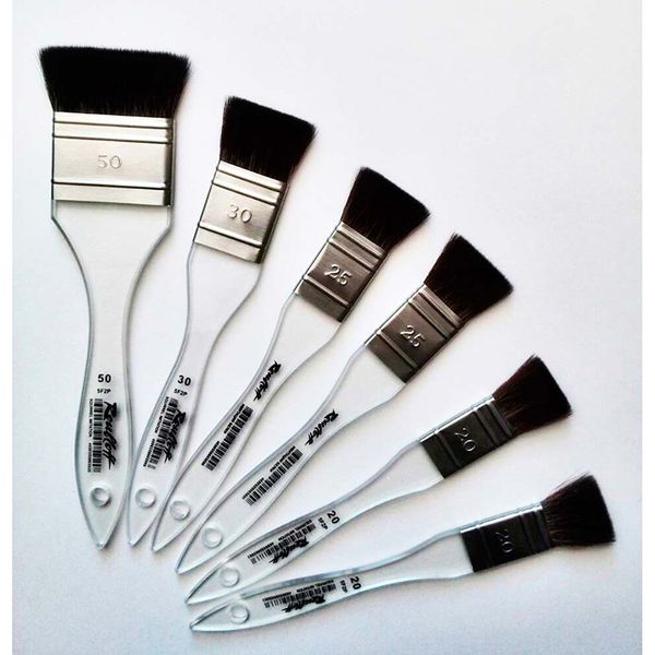 Плаский пензлик-флейц з ворсу, що імітує волосся білки фірми Roubloff. Застосовується для зволоження паперу великого формату в акварельного техніці. А також для заливки однорідним або градієнтним тоном, для нанесення смуг різними рідкими фарбами. Ворс цього пензлика має всі якості натурального ворсу білки. Добре вбирає вологу і також добре віддає її, що дозволяє наносити широкий мазок фарби одним рухом і отримувати цікавої форми плями лише поворотом руки.