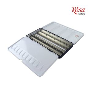 Пенал для акварельних фарб металевий, 28 кювет, ROSA Gallery - являє собою металеву коробку, в яку вбудовані дві палітри різної конфігурації. Пенал має спеціальну вставку для кювет та зручний фіксатор для пальця на нижній кришці пеналу, який дозволяє легко утримувати фарби в руці під час роботи.