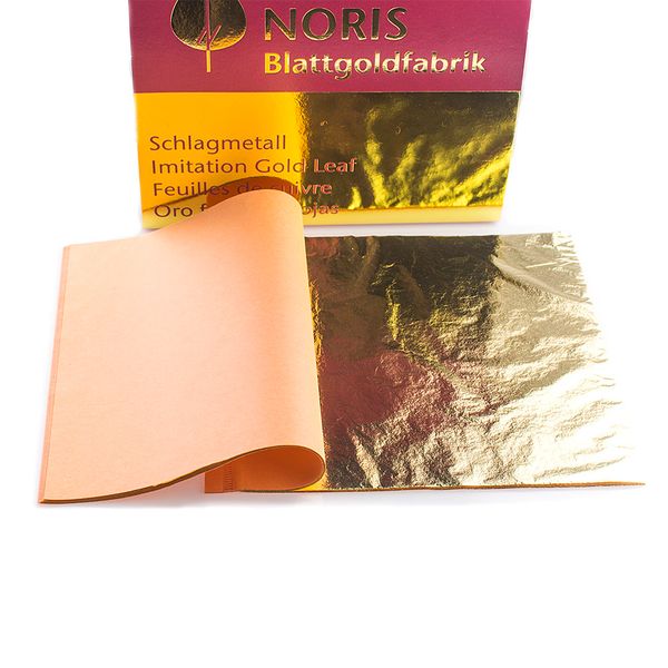 Поталь у книжці 25 листів. Вища якість. Відршзняється від поталі звичайної якості більш високими вимогами до рівномірності тощини листа та єдності кольору між листами. Ідеально пізходить для позолоти пласких поверхонь. Колір золото 2.5, виробник Норіс (Noris) Німеччина, розмір 14 см на 14 см. Купити німецьку золоту поталь за кращою в Україні ціною.