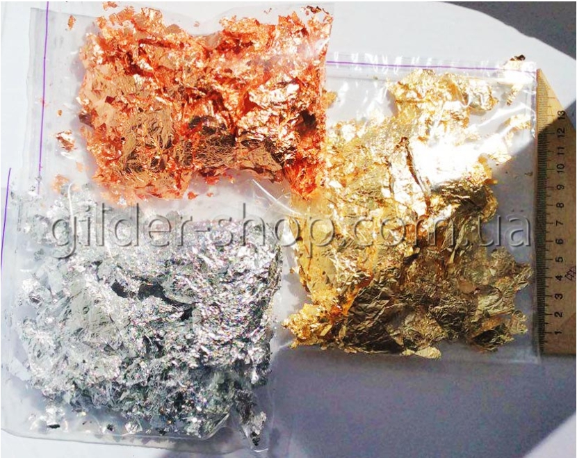 Золочення, зроблене за допомогою пластівців, створює цікавий декоративний ефект. Пластівці розфасовані в пакети 10г, пластівці не дрібні, не м'яті, не спресовані.