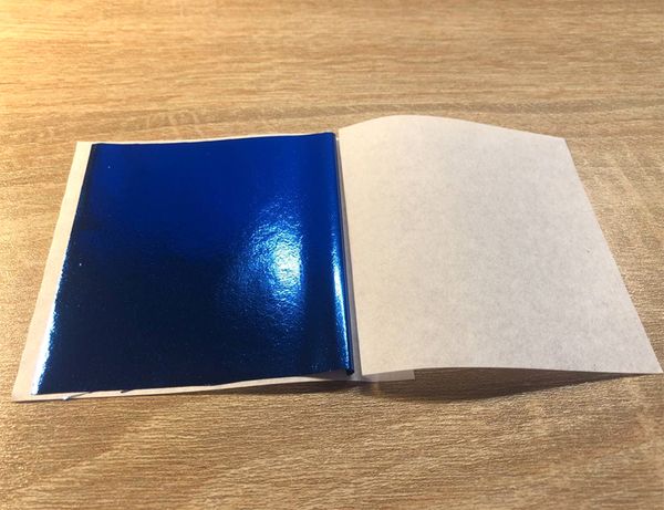 Размер 8 см на 8,5 см. Зеркальная поталь №21 Синий, 25 лист.